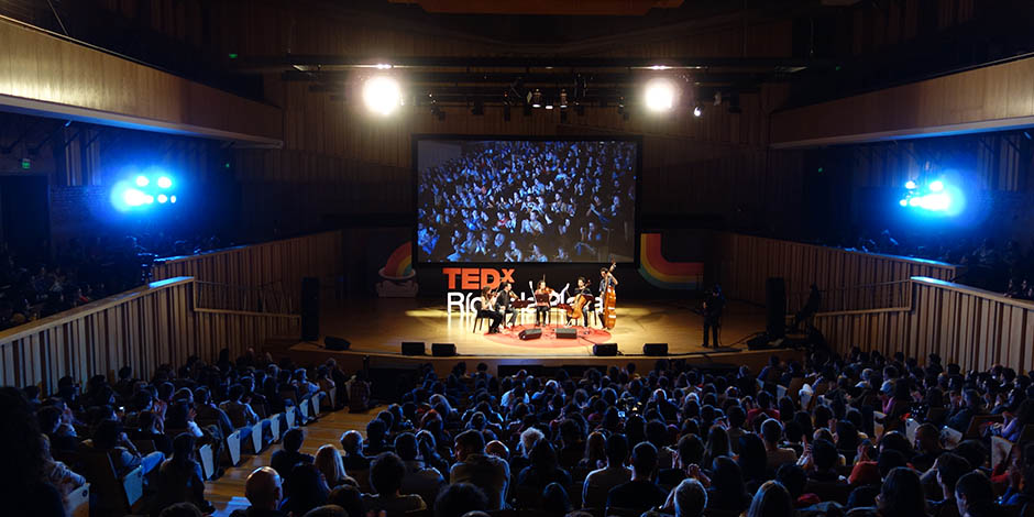 For the first day of the 2 day TEDx Rio de la Plata event, we looked for a solution without interfering with the stage. On a 6 meter screen, we generated a rear projection with a Barco Data 20.000 ANSI FLM Series projector. Additionally, we also provided emergency power supplies for the control desk and back up projectors at the client's request.