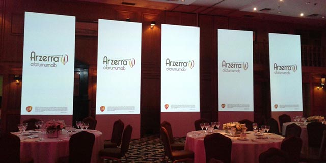 In this occasion we also worked with suspended lateral panels which were animated