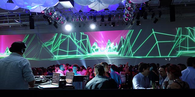 Multimedia Content prepared in accordance to Edge Blended Full HD large panoramic resolutions that allow to map the space so as to enhance its geometry.