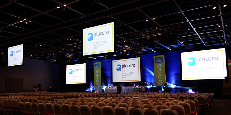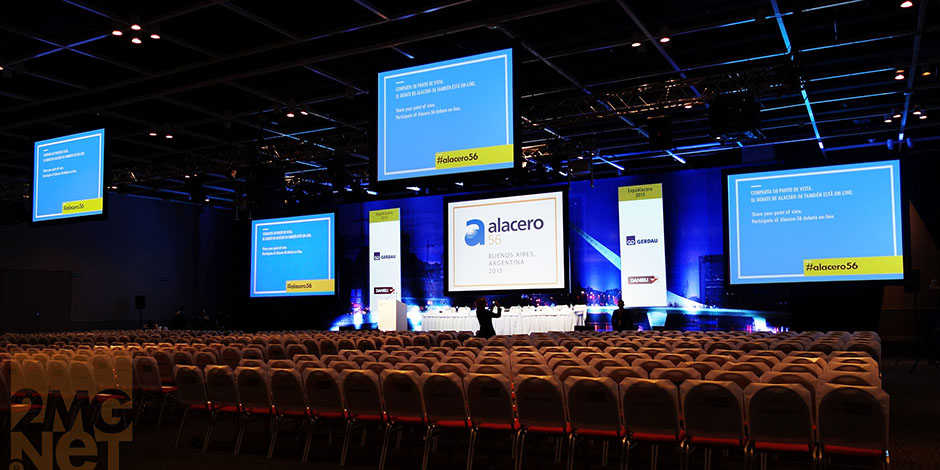 Along with a out-of-state corporate partner, 2MG.Net solved all audiovisual needs for the "ALACERO" congress at the Hilton Hotel from November 9th to November 11th 2015. The layout included a main stage set comprised of three 16 x 12 ft projection screens and two 5 x 13 ft. projected banners. In order to assure a proper field of vision for all guests, two delayed screens were also set up and projected upon. For this event, 2MG.Net's integral solution included audio, video, lighting, live feed and all gear needed for digtal signage at foyer areas and VIP sections.