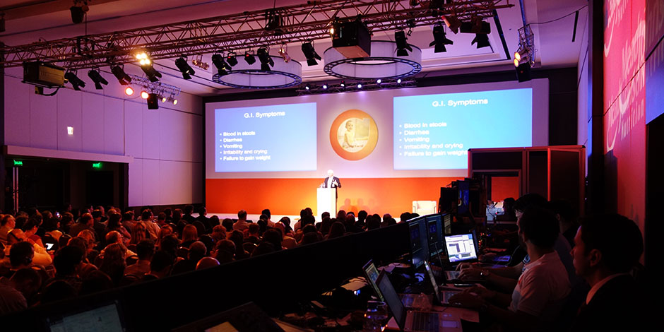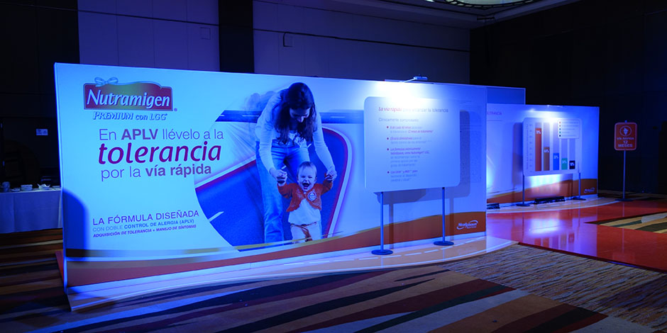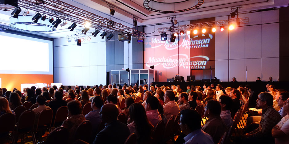 After design phase, we set the stage for Mead Jhonson's new product launch at the Hilton Hotel in Buenos Aires. An integral AV solution was provided which covered Video, Audio, Lighting, and Simultaneous Intepretation. Along with said services, we also supplied trade show stand design, registration area and orientational digital signage.